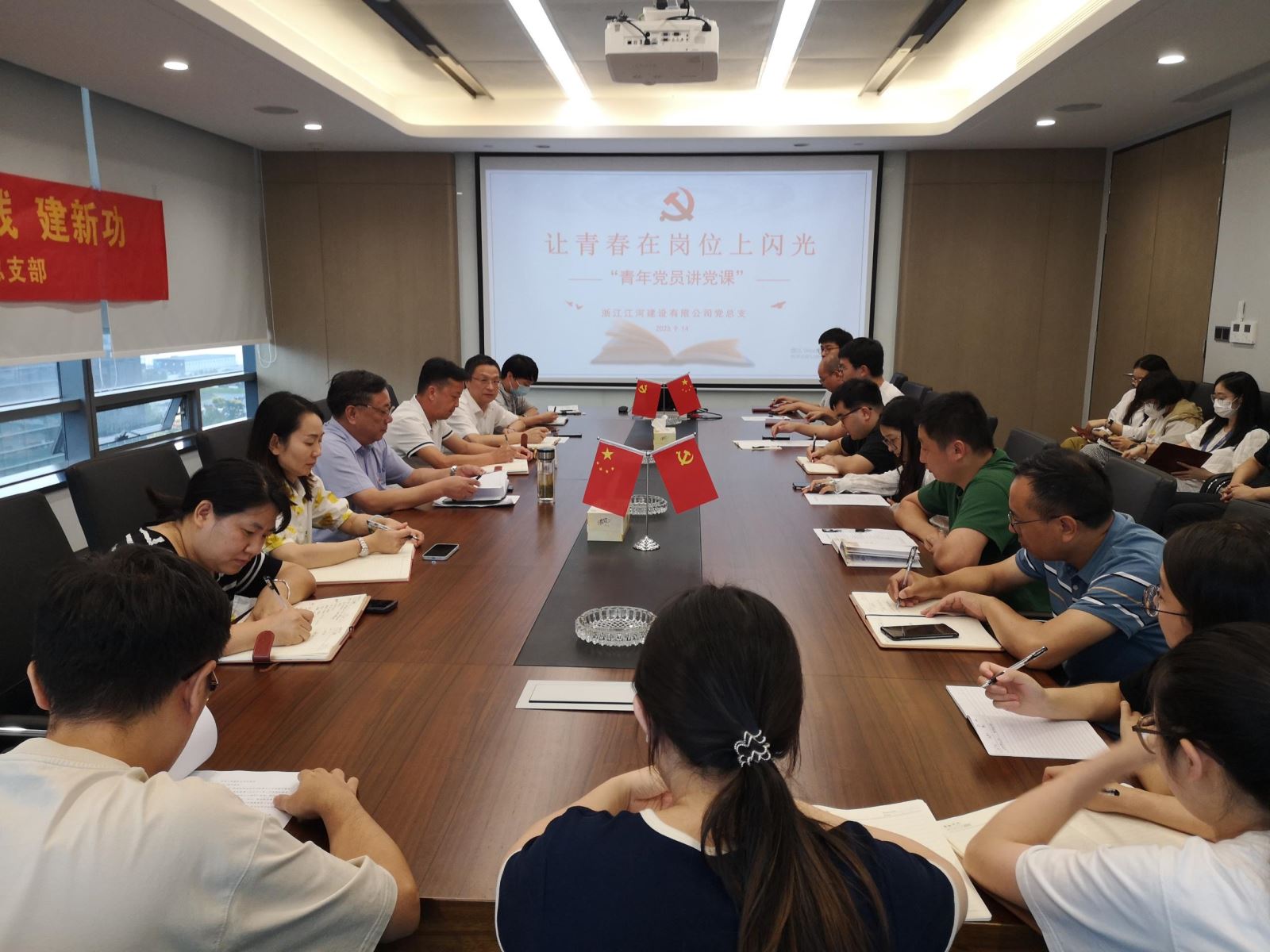 為深入學習貫徹黨的二十大精神,進一步激發青年黨員投身創新深化、改革攻堅、開放提升的活力,推動公司青年黨員在各項工作中沖在前、做先鋒。9月14日下午,浙江江河建設有限公司黨總支舉辦“青年黨員講黨課”活動。公司黨建指導員、上虞建筑業管理局原局長徐沛生蒞臨活動現場指導,為建筑業企業管理和發展指明了方向,對青年黨員和年輕員工提出了希望和要求。公司黨總支書記、董事長袁偉忠作了題為《點燃干事激情,挺膺擔當作為,馳騁青春奮斗路》的重要講話。公司全體黨員、預備黨員、流動黨員、入黨積極分子,非黨年輕職工代表參加了活動。