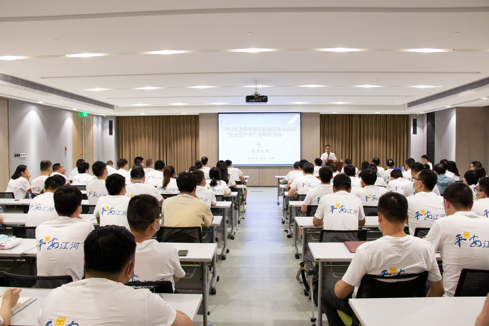 6月20日,江河建設召開半年度安委會工作會議暨“安全生產月”專項學習會,總結上半年度安全生產工作,部署下半年安全生產工作重點。公司總裁陳宋江到位講話并講了一堂安全生產的公開課,公司副總裁張堅主持會議。